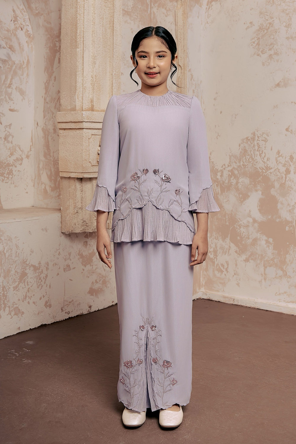 Kenchana Flower Kurung – Soft Lilac