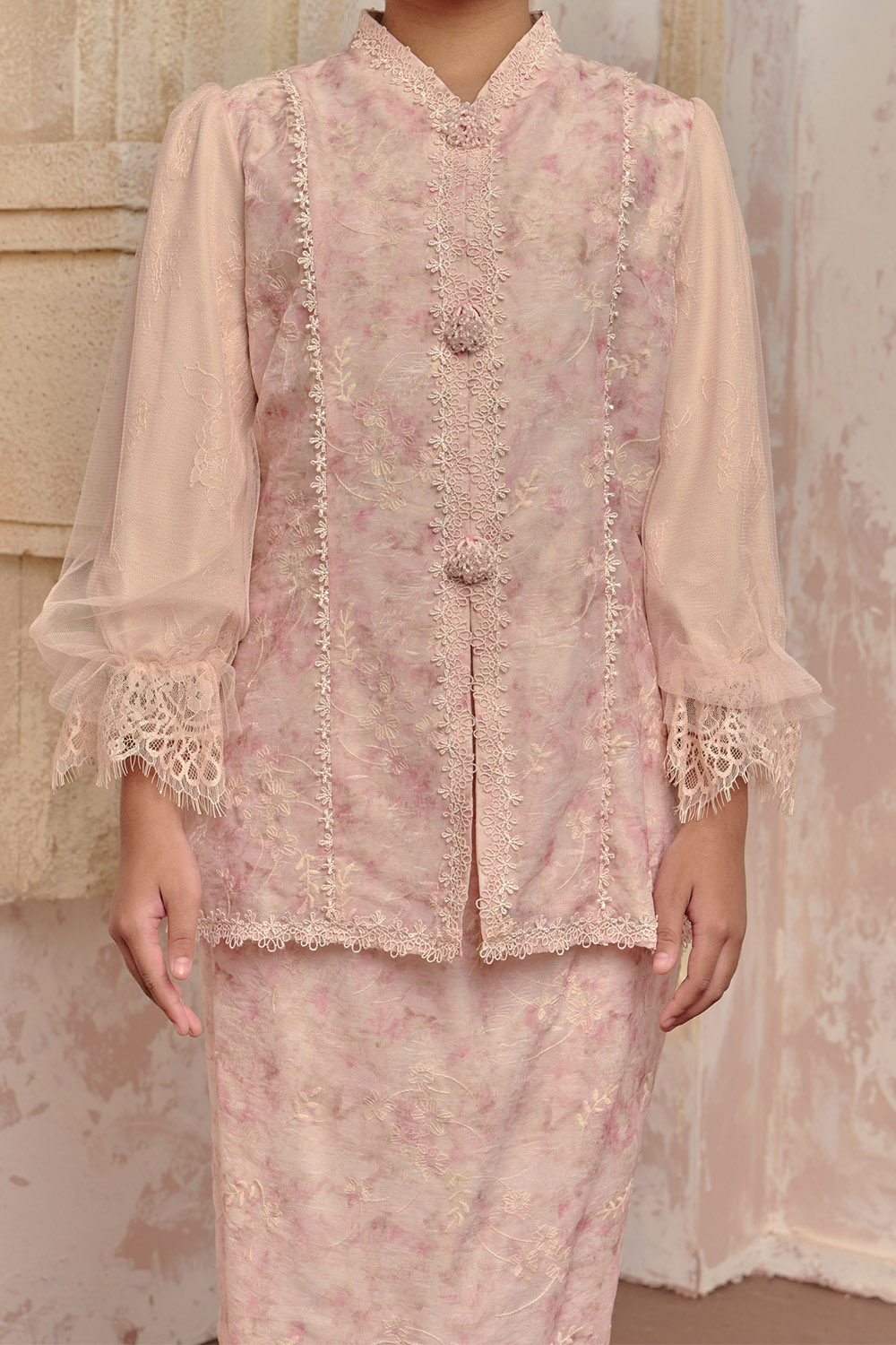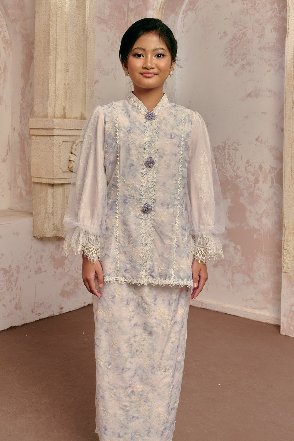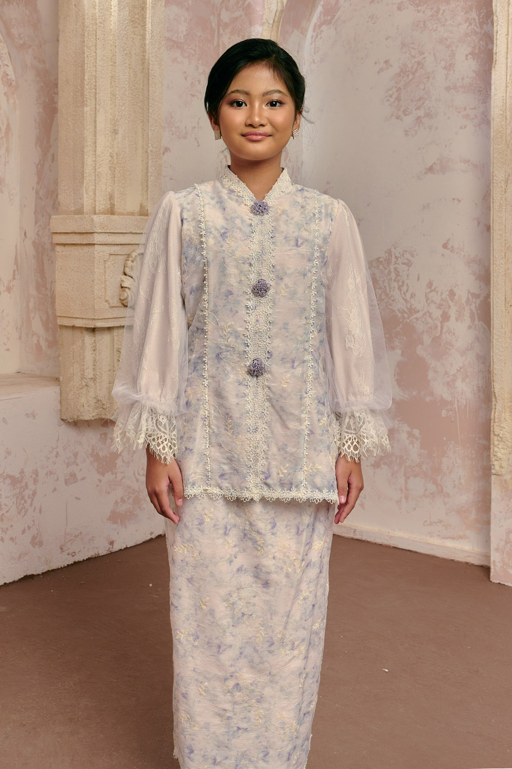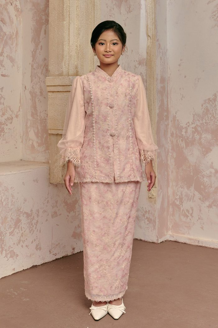 Puspa Kebaya **Color may differ due to lighting and editing Long Kebaya with flower accesories Material Premium Organza tencel with lace **cooling and breathable** Model Weight 49kg , Height: 170cm. Model is wearing xs This item is PRE ORDER. We will ship this item end of January (Pre order will get free Sampul Raya & Garment…