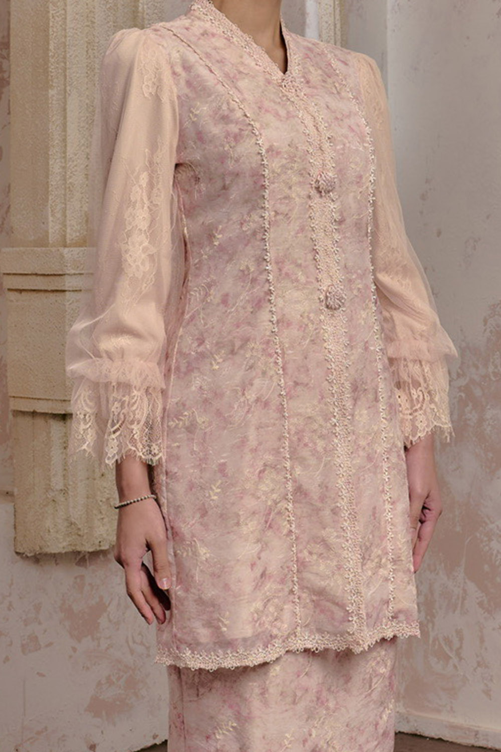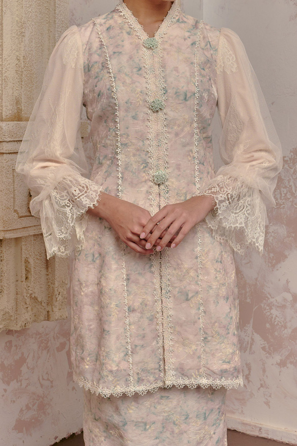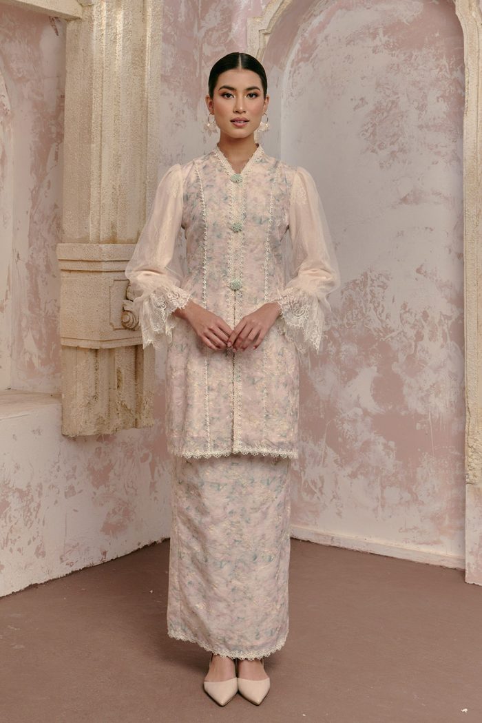 Puspa Kebaya **Color may differ due to lighting and editing Long Kebaya with flower accesories Material Premium Organza tencel with lace **cooling and breathable** Model Weight 49kg , Height: 170cm. Model is wearing xs This item is PRE ORDER. We will ship this item end of January (Pre order will get free Sampul Raya & Garment…