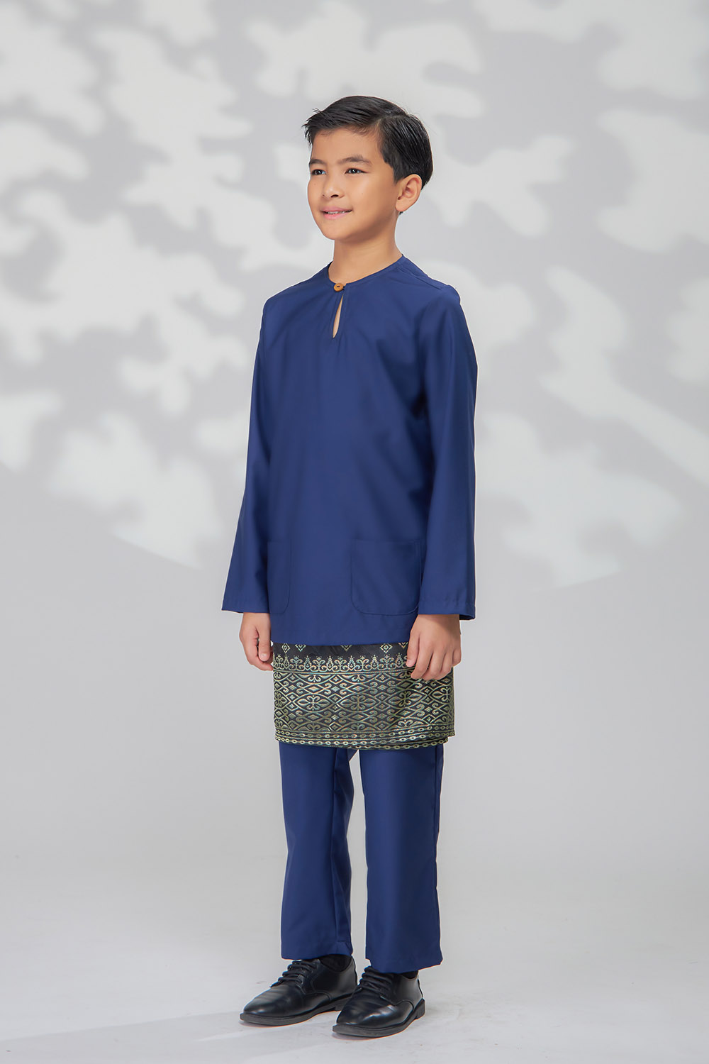 Edward Baju Melayu Teluk Belanga Color : **Color may differ due to lighting and editing Material Rayon Blend **soft, cooling and breathable** Round neckline with wooden button Two front pocket We will ship this item early of february. MEASUREMENT SIZE SIZE 1-2 3-4 5-6 7-8 9-10 11-12 Shoulder 9.5 10.5 11.5 12.5 13.5 14 Bust 25…