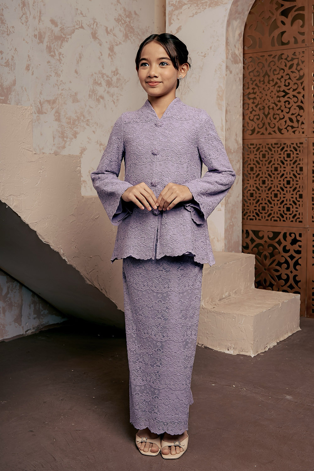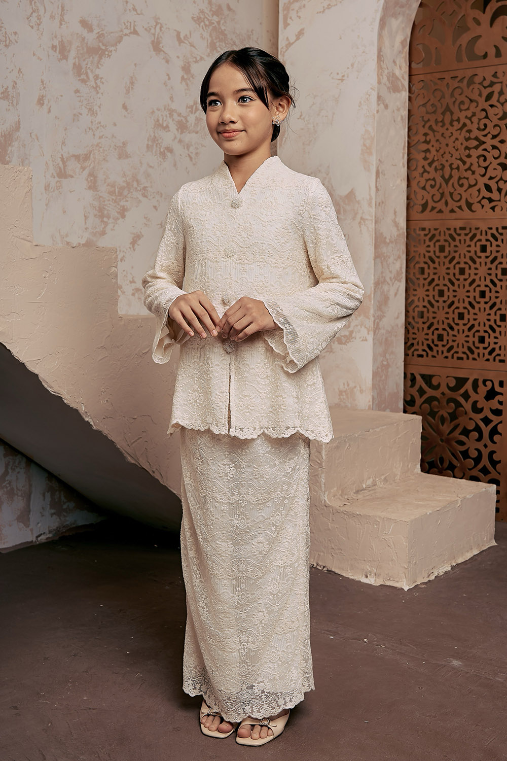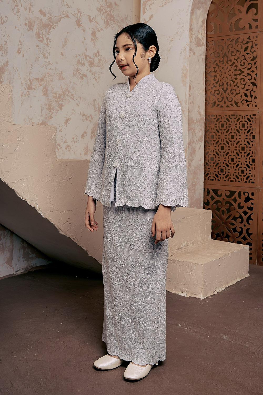 Kartika Lace Kurung **Color may differ due to lighting and editing Fully Lace Modern Kurung Material Full lace with fully lined. **cooling and breathable** Model Weight 49kg , Height: 170cm. Model is wearing xs This item is PRE ORDER. We will ship this item early February (Pre order will get free Sampul Raya & Garment…