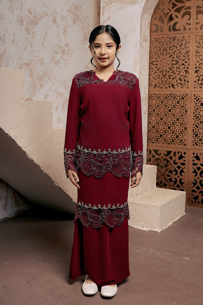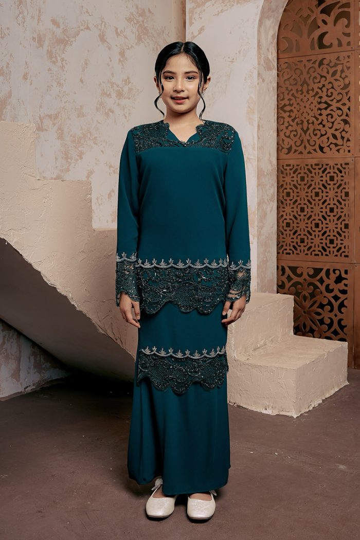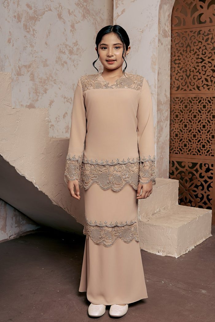 Seri Kurung Color : **Color may differ due to lighting and editing Modern Kurung with beaded lace. Material premium chiffon **cooling and breathable This is pre order. We will ship this order by early february MEASUREMENT SIZE SIZE 1-2 3-4 5-6 7-8 9-10 11-12 Shoulder 8 9 10 11 12 12.5 Bust 22 24 26…