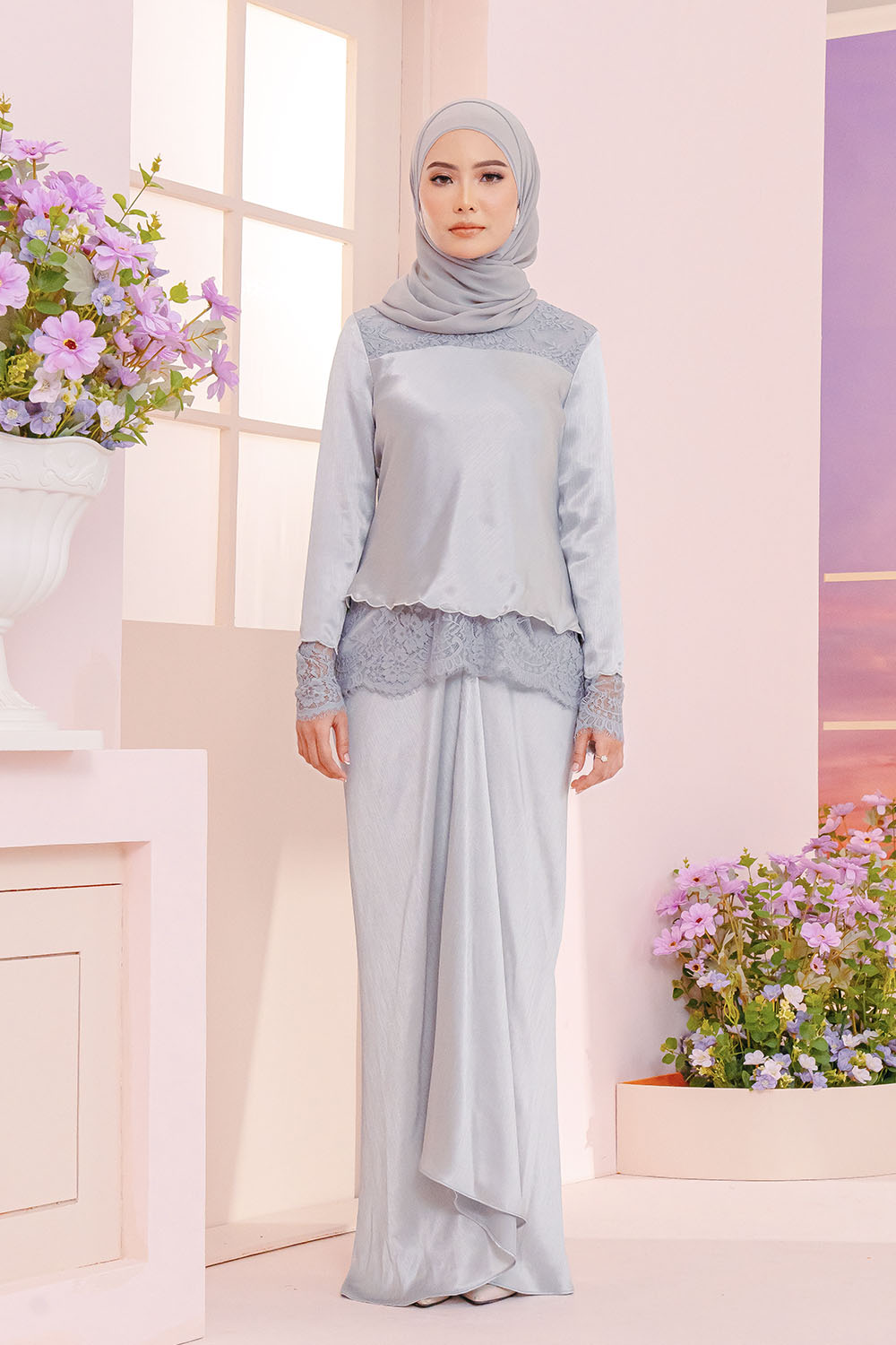 - Mini Scallop kurung with French Lace and instant pario skirt.