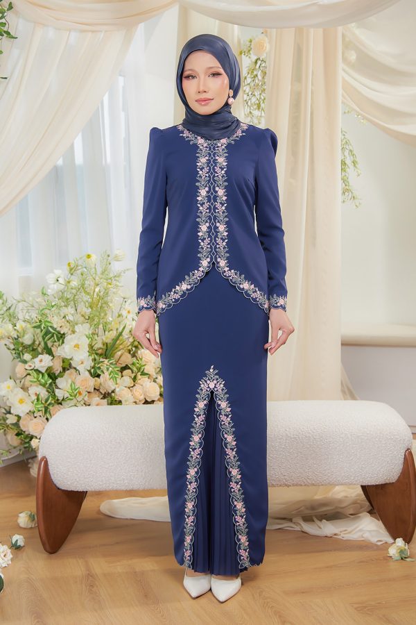 - Modern Embroidery Kurung with Pleated layer skirt (Fully lined front top and skirt)