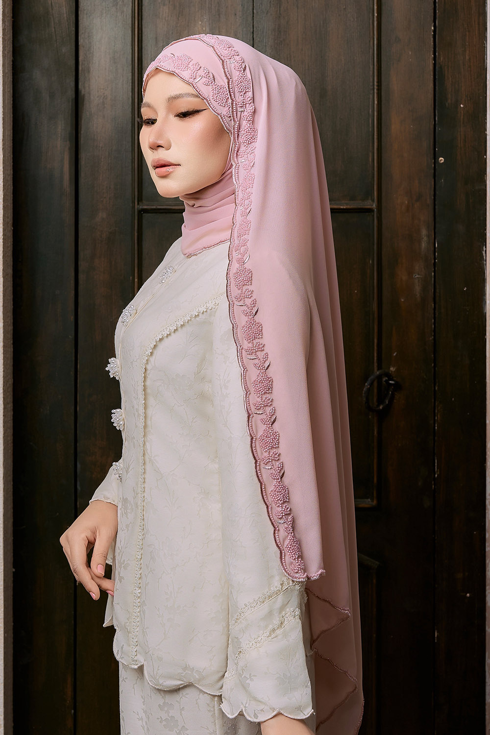 Kesuma Beaded Shawl – Baby Pink