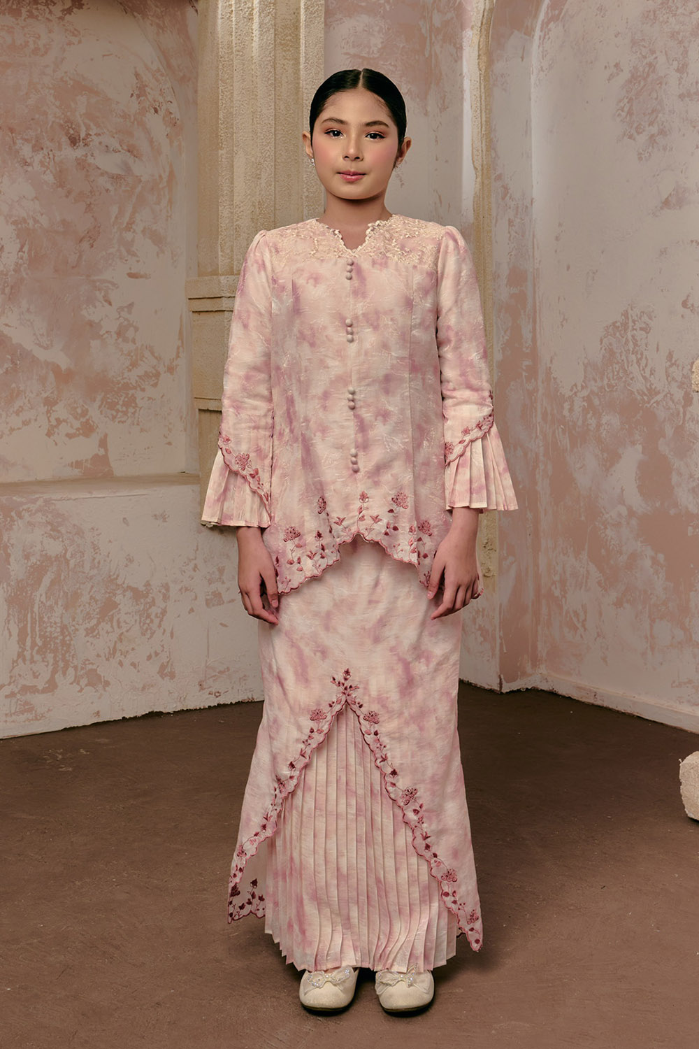 - Modern Kurung with flower embroidery