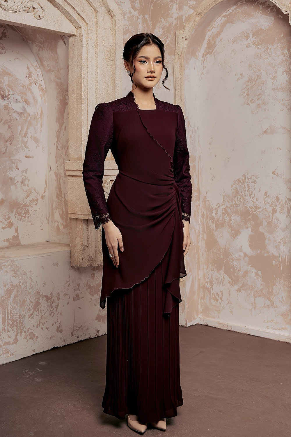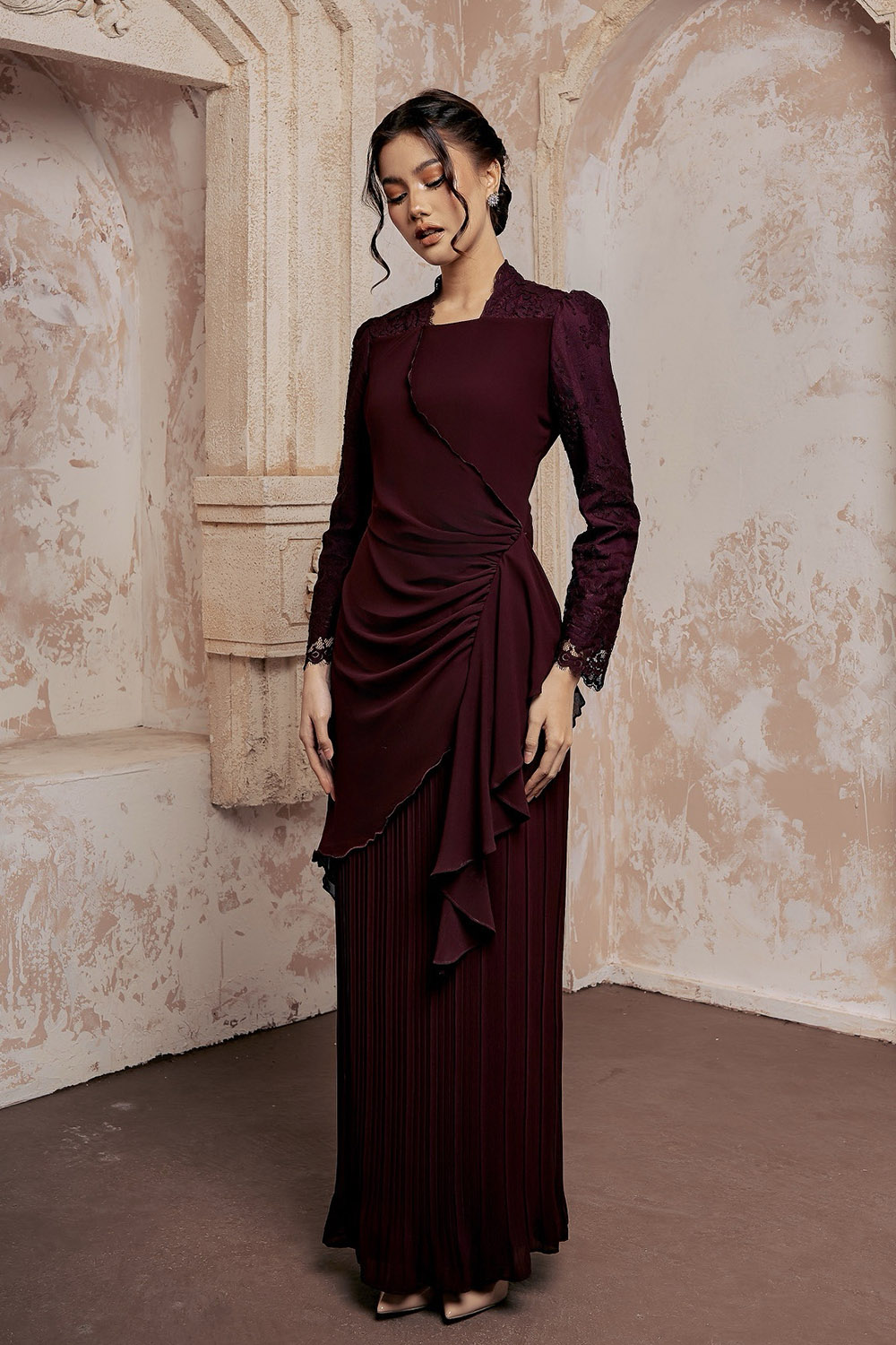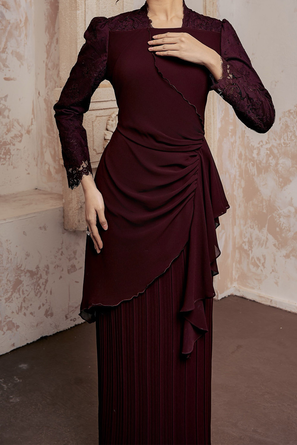 - Long Kurung ruffles and pleated skirt
