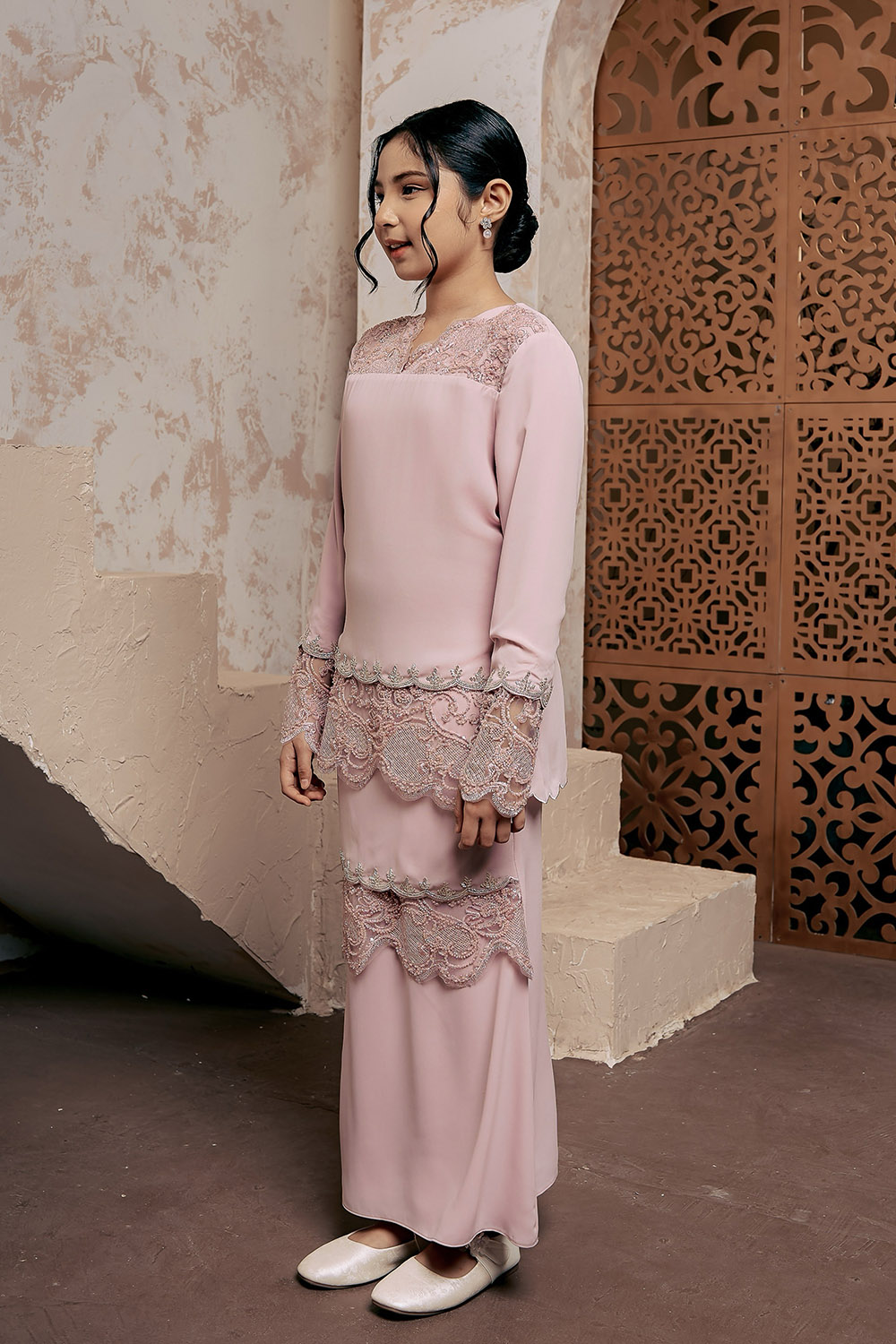 - Modern Kurung with beaded lace.