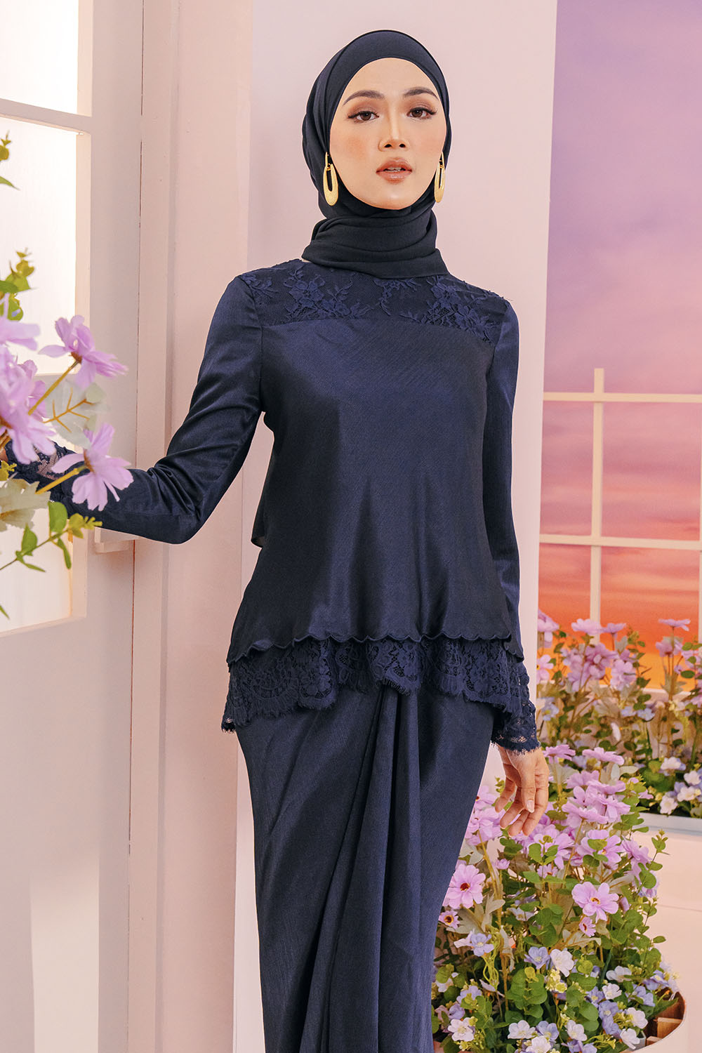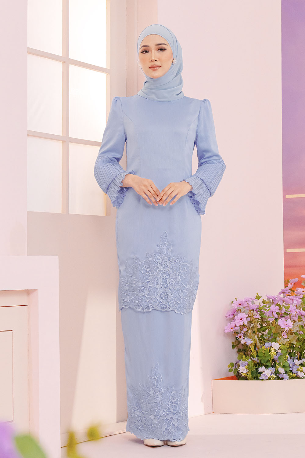 Penelope Kurung Blue Color : Blue **Color may differ due to lighting and editing Custom Print Modern Kurung with flower embroidery & mesh pleated sleeve (Fully lined front top and skirt) Material Premium Organza. Fully lined. **cooling and breathable We will ship this item early February MEASUREMENT SIZE SIZE 1-2 3-4 5-6 7-8 9-10 11-12 Shoulder…