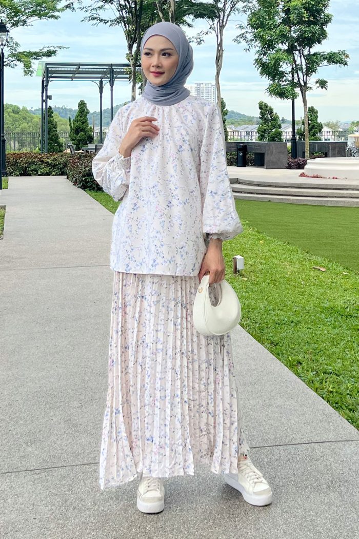 Julia Embroidery Kurung Light Grey Color : Light Grey **Color may differ due to lighting and editing Modern Embroidery Kurung with Pleated layer skirt (Fully lined front top and skirt) Material Premium twill. Fully lined. **cooling and breathable** *Measurement in inches*